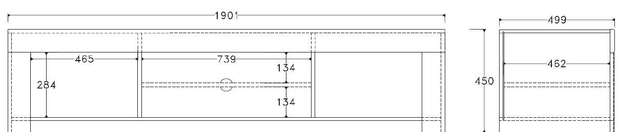 • Tam ir divi aizvērti sānu nodalījumi un divi atvērti plaukti; viens no tiem centrā ar atveri kabeļu novadīšanai.