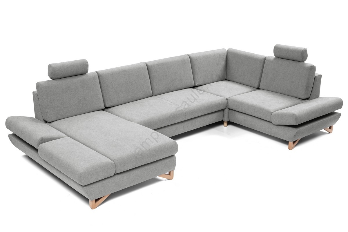• Izvelkams U formas polsterētais stūra dīvāns AVESTA ar plašu uzglabāšanas nodalījumu, pelēks