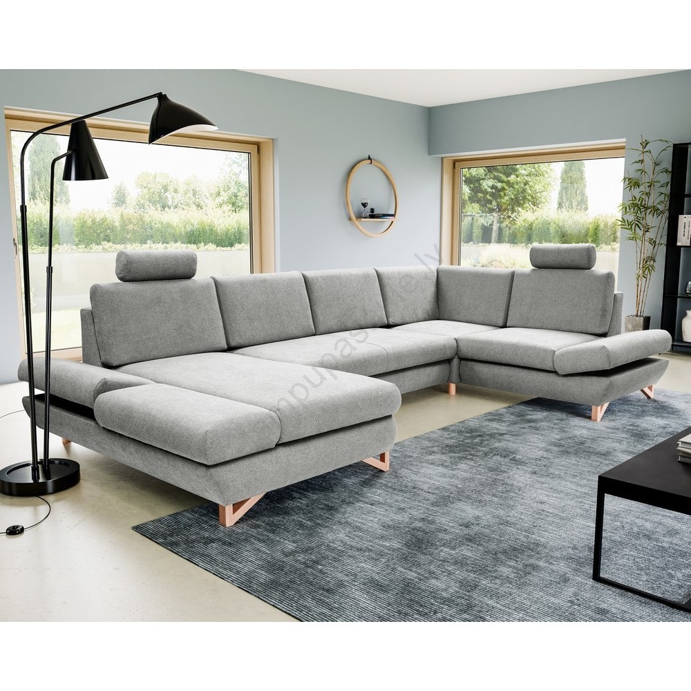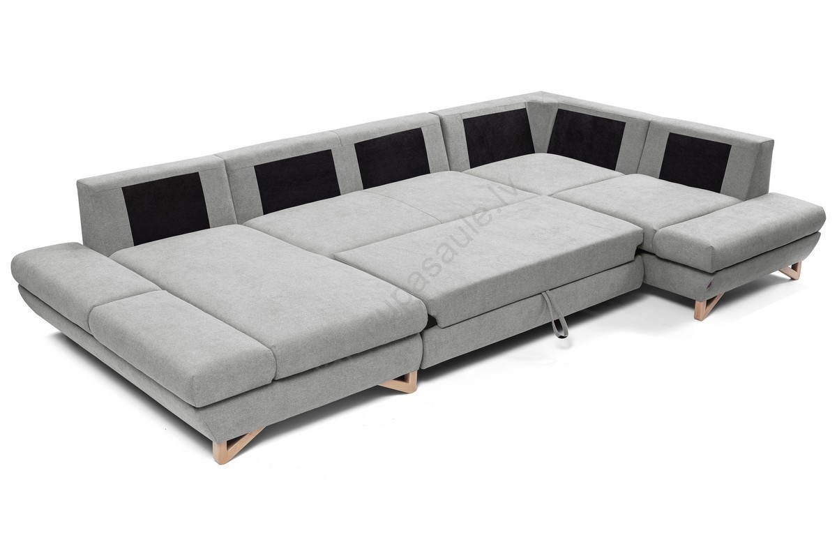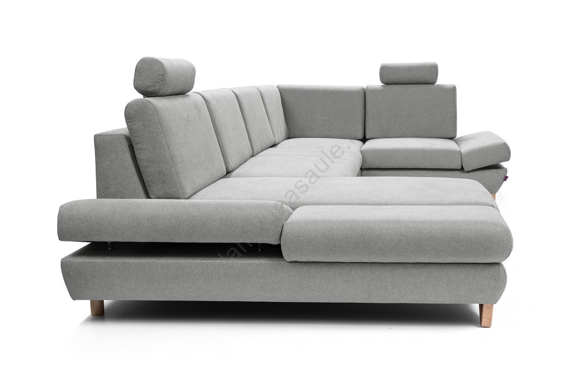 • Izvelkama U formas stūra polsterēta dīvāna garnitūra AVESTA ar glabāšanas nodalījumu, pelēka