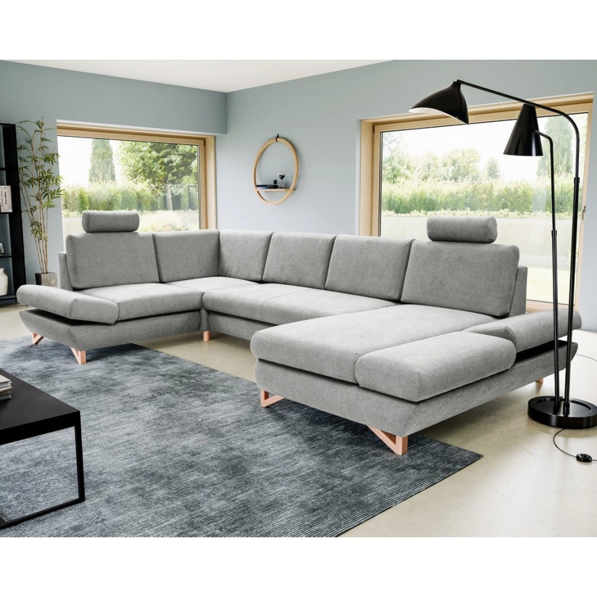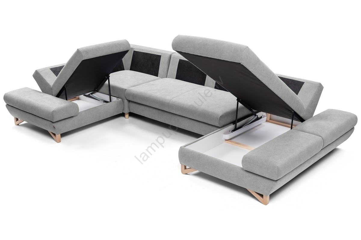 • Izvelkams U formas polsterētais stūra dīvāns AVESTA ar plašu uzglabāšanas nodalījumu, pelēks