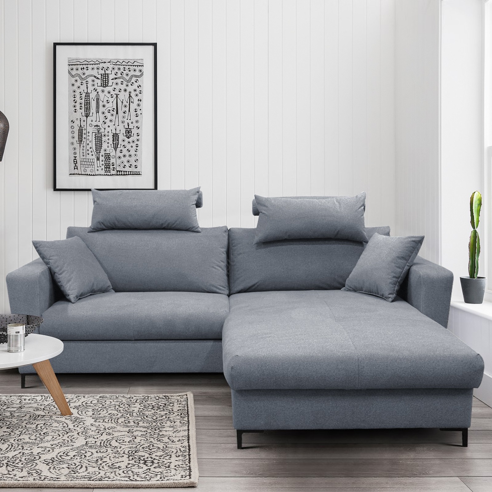 • Izvelkams L formas stūra dīvāns HORTA ar uzglabāšanas nodalījumu, labais, pelēks
