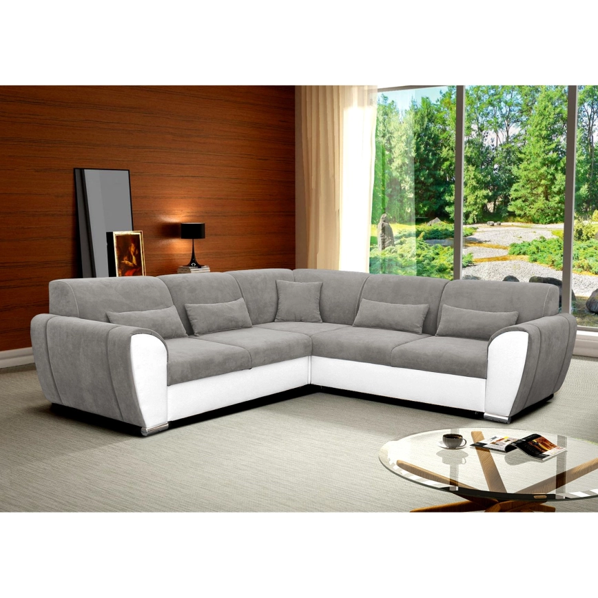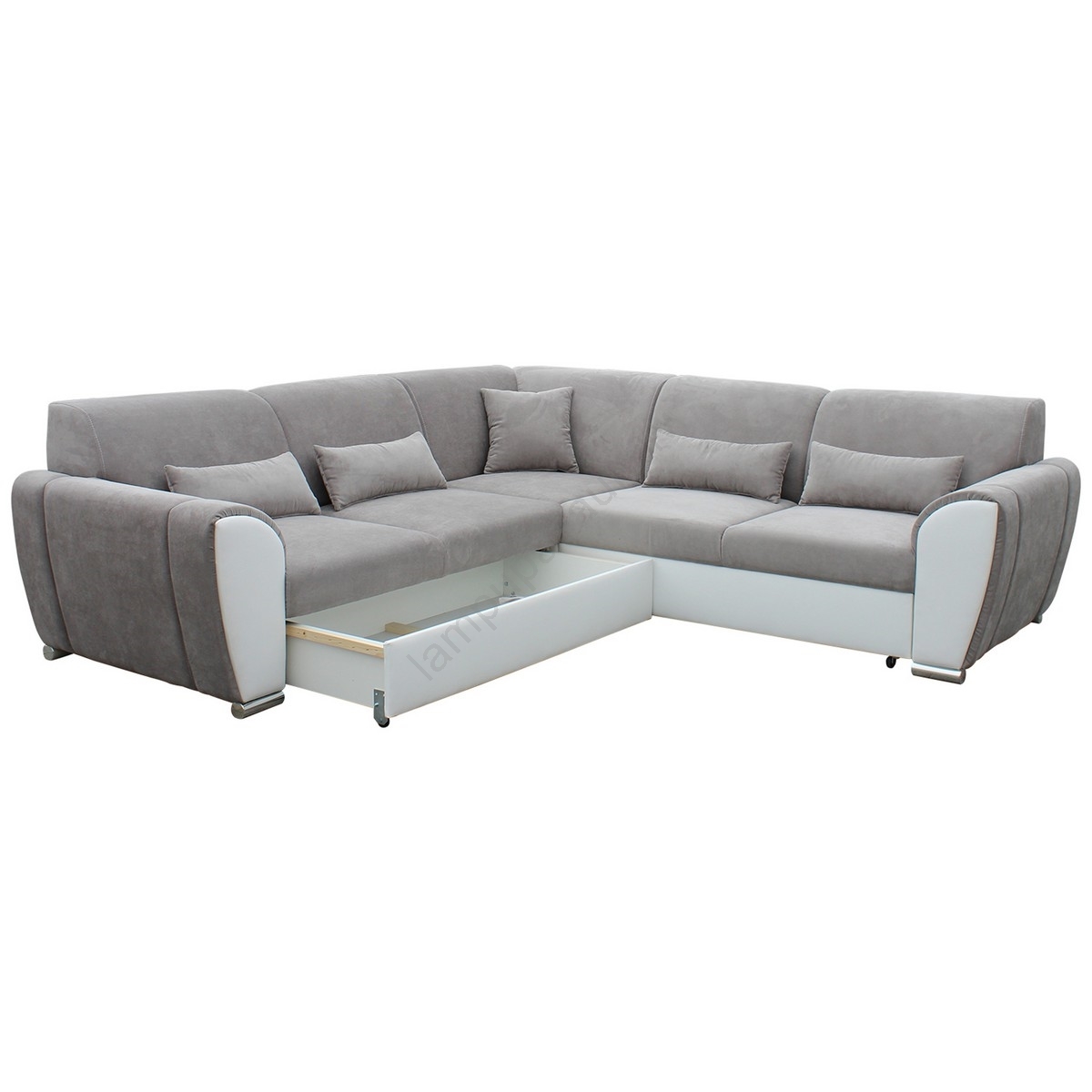 • Izvelkams L veida stūra dīvāns ar uzglabāšanas nodalījumu VISEU — kreisais, pelēks/balts