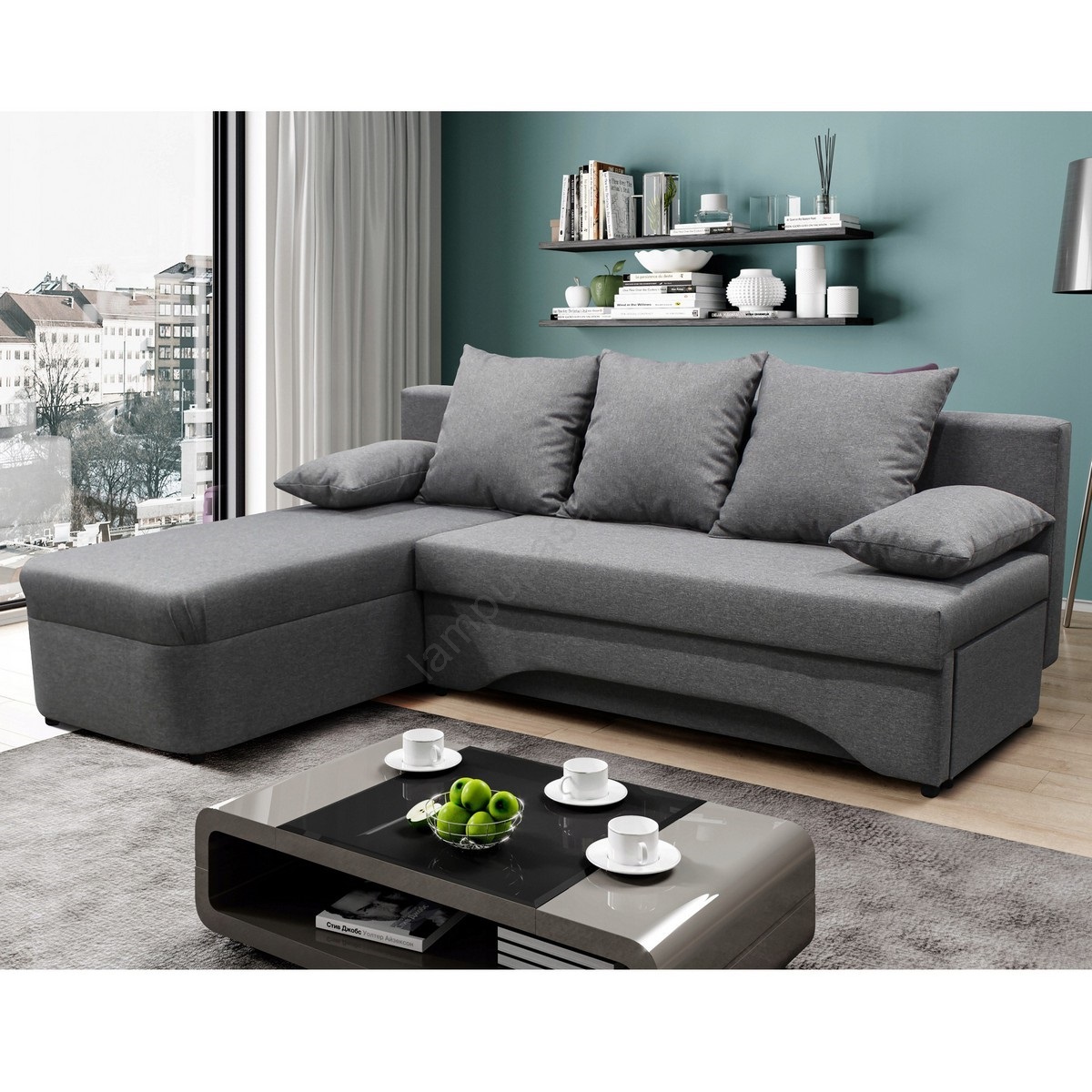 Universāla izvelkamā stūra dīvāngarnitūra ar uzglabāšanas nodalījumu L-formā ALMEIDA, pelēka | Lampu