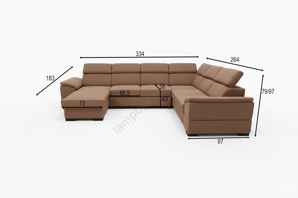 • Plašs stūra dīvāns U formā piedāvā gan komfortu, gan elegantu dizainu.