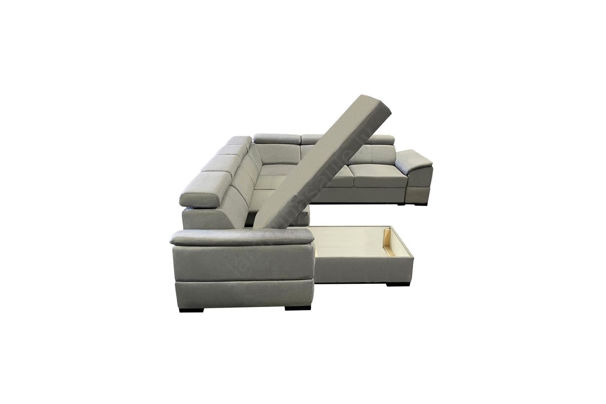 • Izvelkamais U veida stūra dīvāns ar universālu stūri un glabāšanas nodalījumu GRANADA, gaiši pelēks