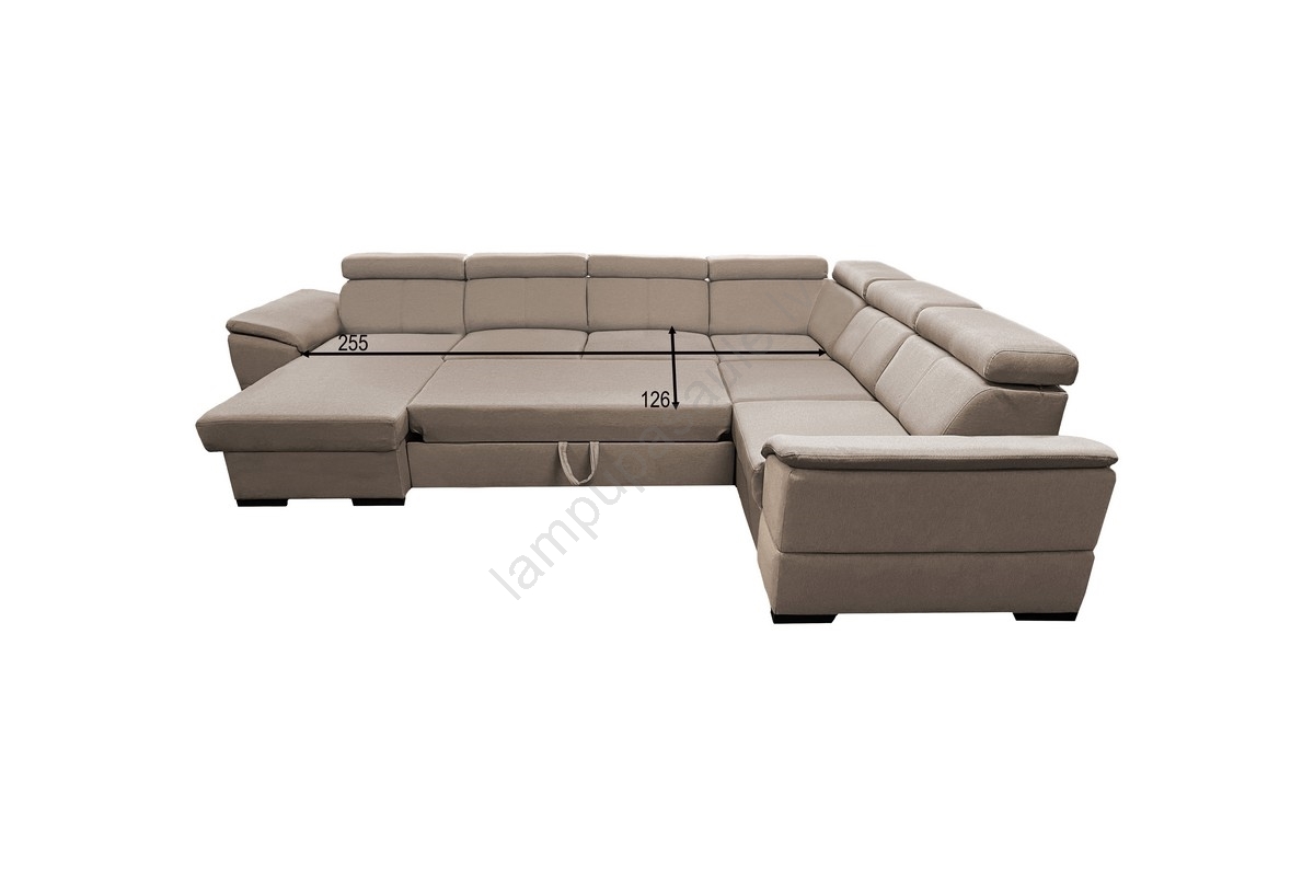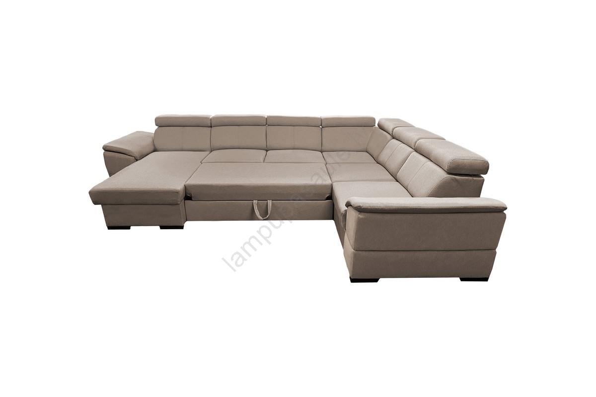 Izvelkama dīvānu garnitūra GRANADA ar universālu U-formas stūri un uzglabāšanas nodalījumu, bēša | L