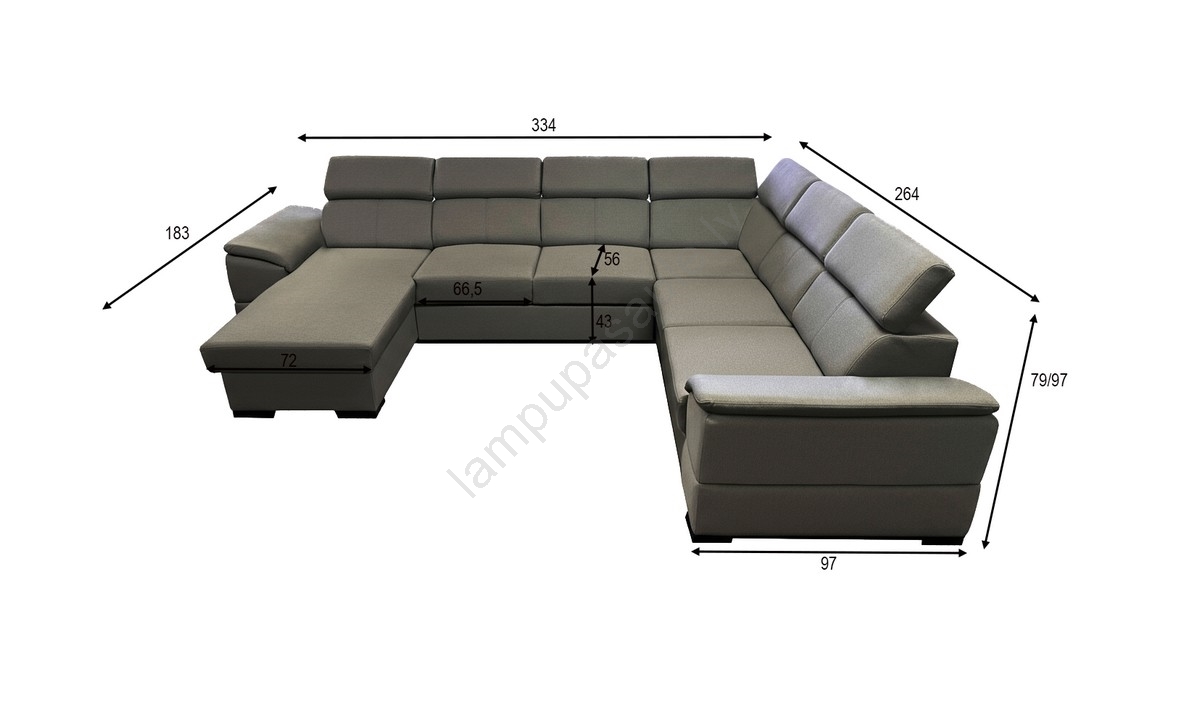 • Dīvāns piedāvā 7 regulējamas galvas atzveltnes ar 5 pozīcijām.
