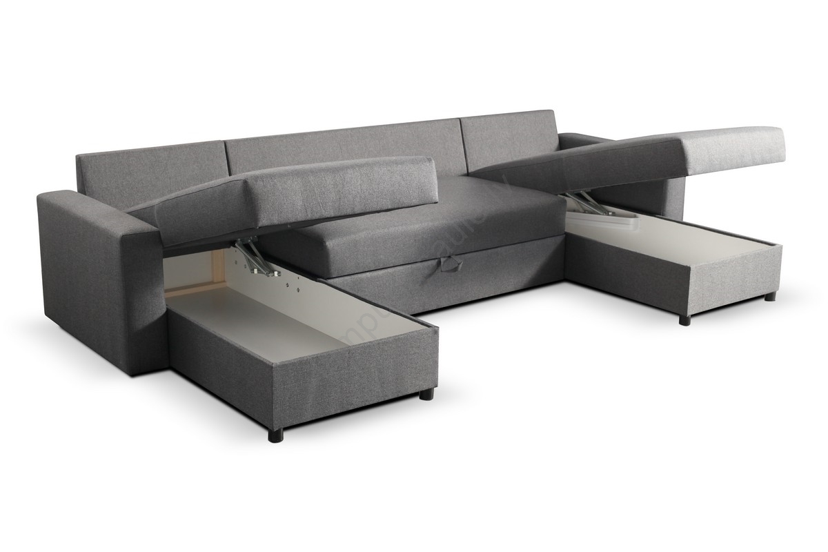 Izvelkamais U formas dīvāns ar uzglabāšanas nodalījumu JANISE, pelēks | Lampupasaule