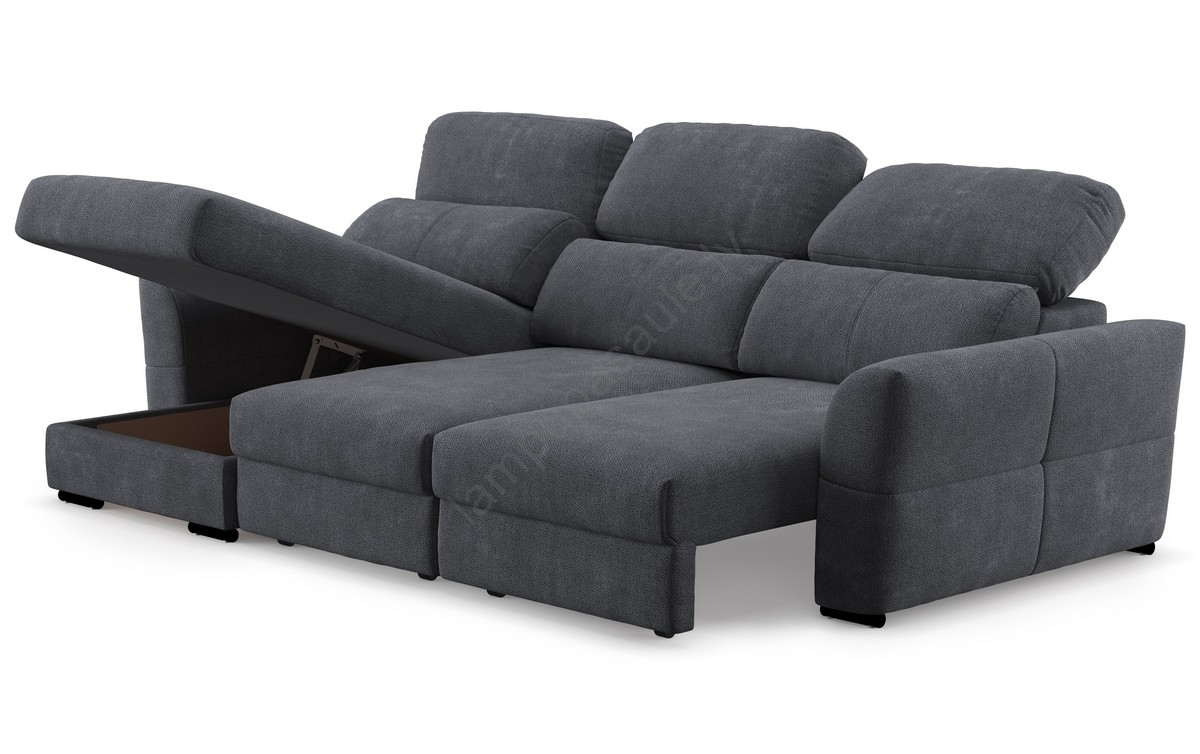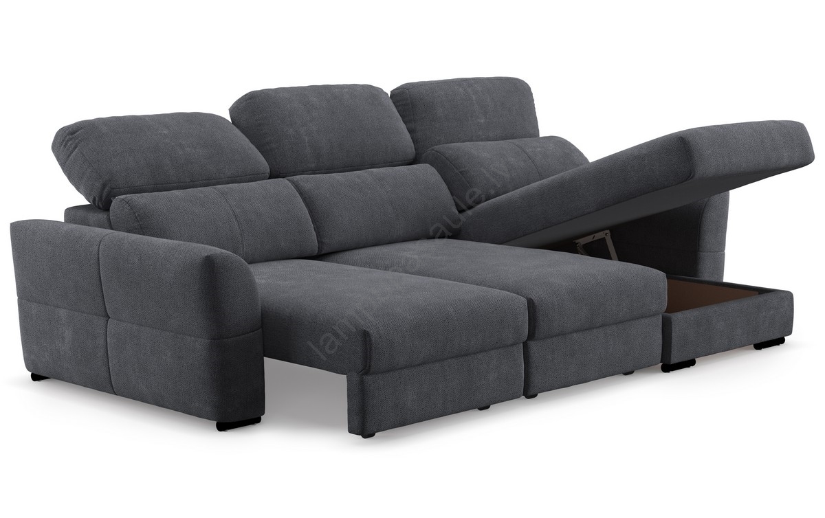 Universāls stūra izvelkamais trīsvietīgais dīvāns ar uzglabāšanas nodalījumu TRENTO antracīts | Lamp