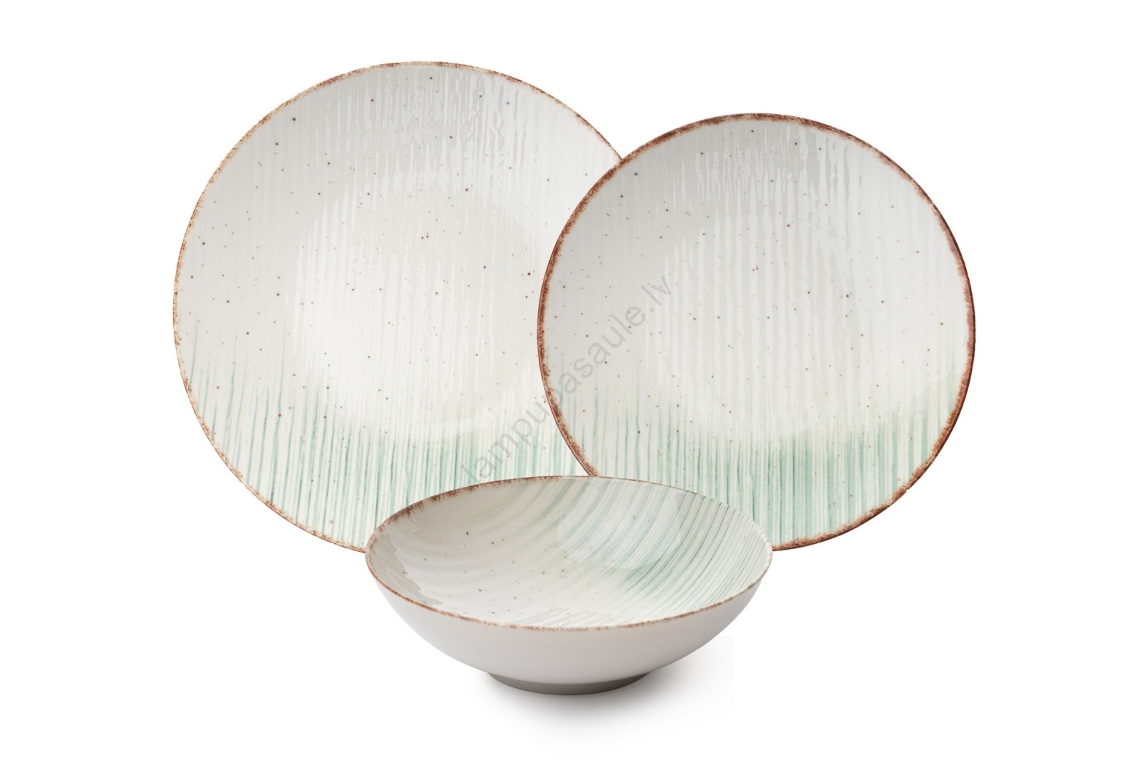 Vakariņu servīze 24 gab. balta/zaļa/porcelāns