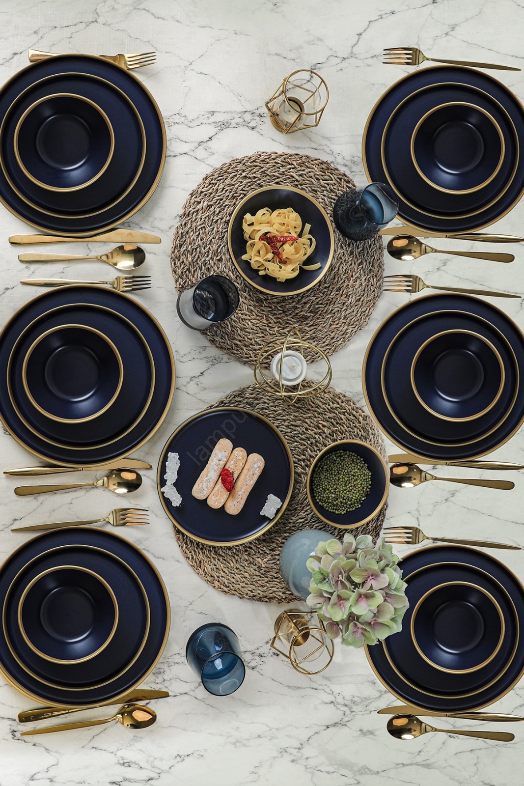 Vakariņu servīze 24 gab. zila/zelta/keramika | Lampupasaule
