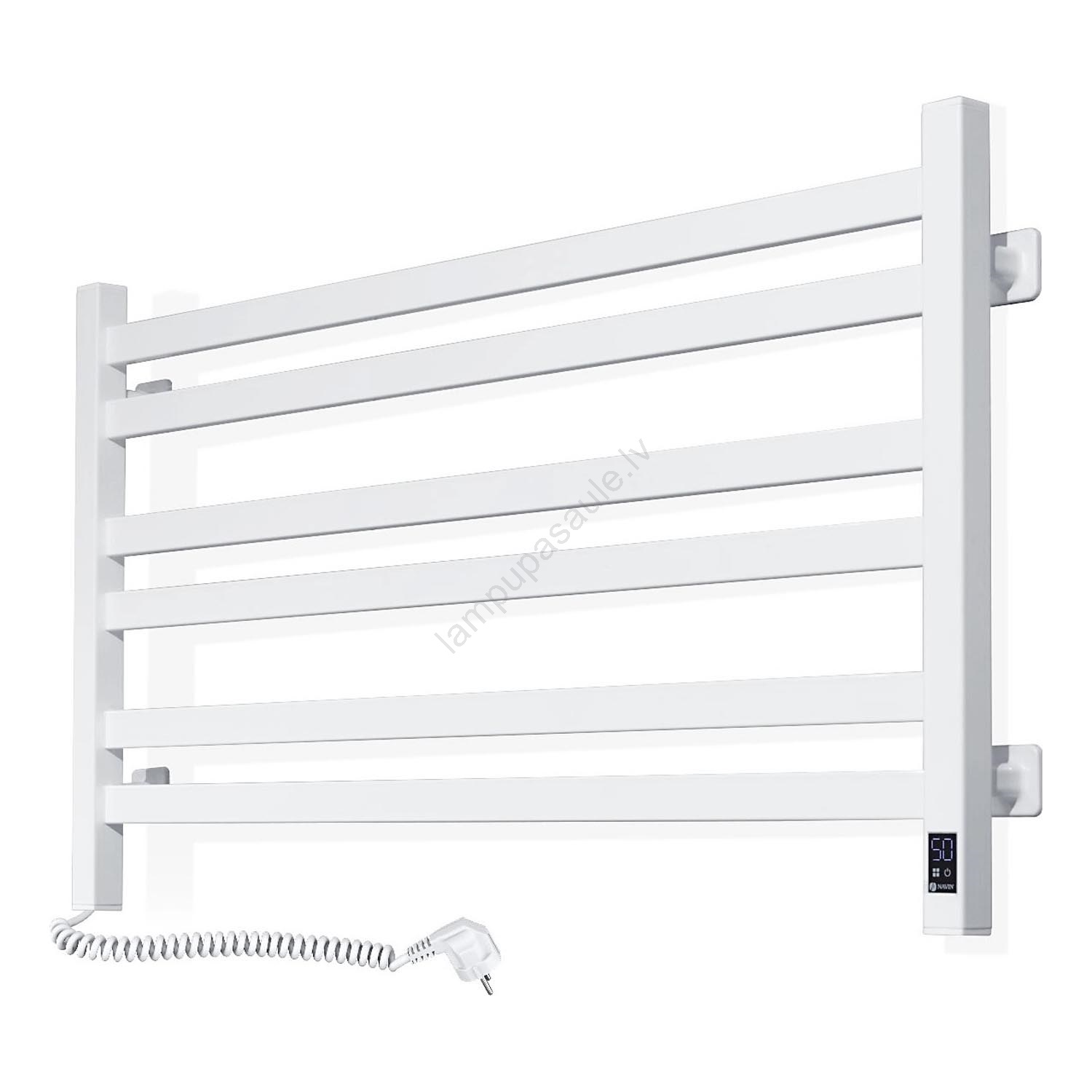 Vannas istabas dvieļu žeburveida radiators ar termostatu AVANGARD 300W/230V 50,6 cm IP44, balts, kreisais, kvadrātveida