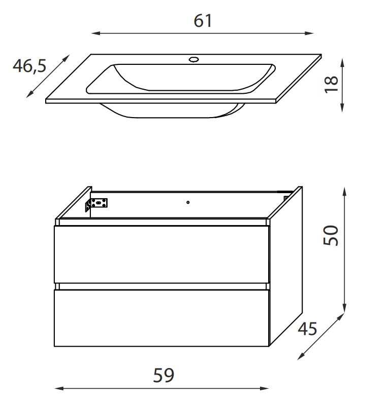 • Vannas istabas skapis ar izlietni KENWOOD 61 cm, melns/balts