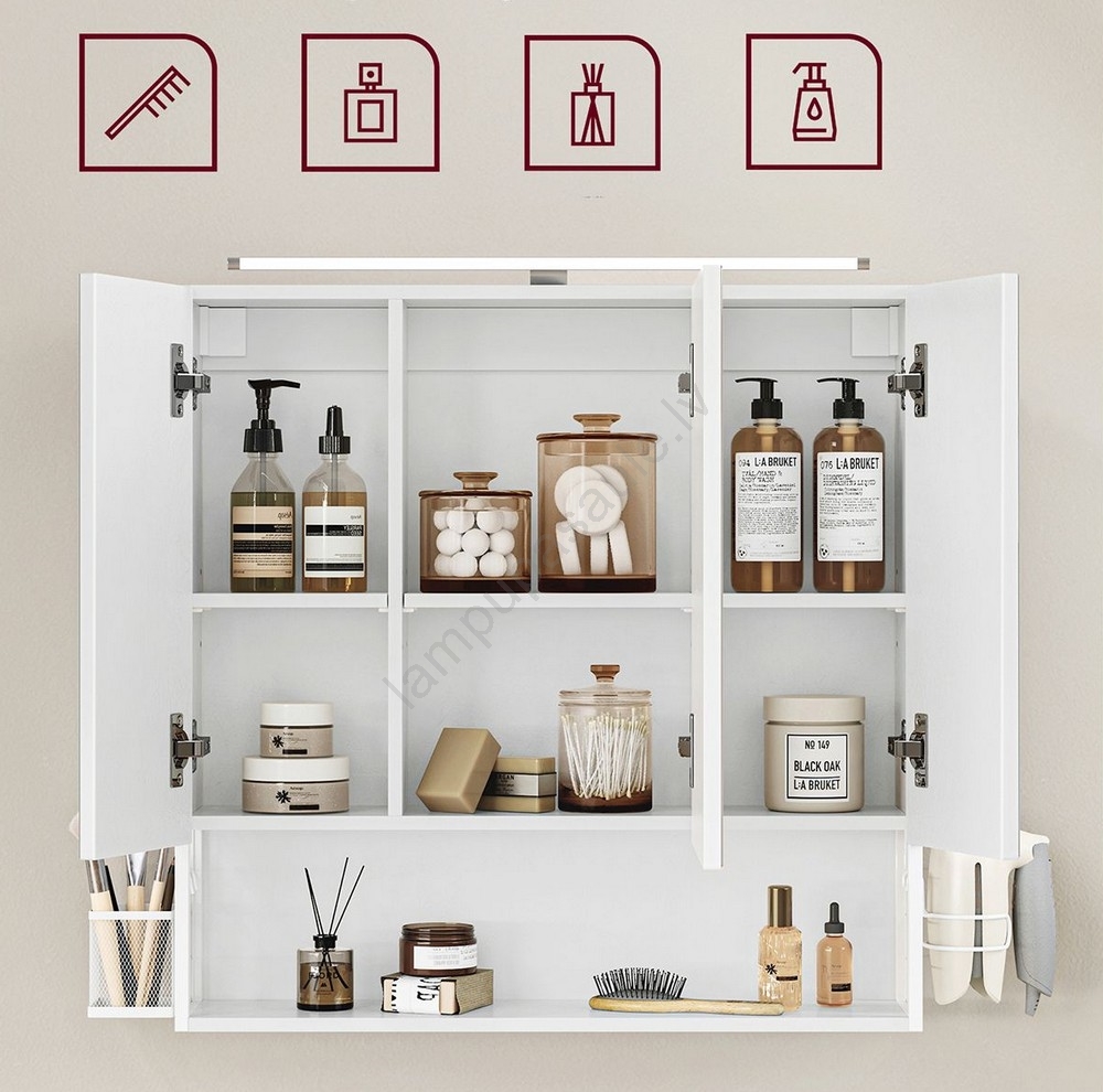 • Iekšējie plaukti ļaus jūsu kosmētiku un higiēnas piederumus ērti turēt pie rokas.