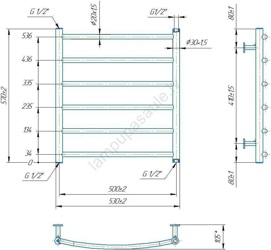 • Radiators ļauj pieslēgt no apakšas vai diagonāli - atkarībā no jūsu apkures sistēmas izvietojuma.