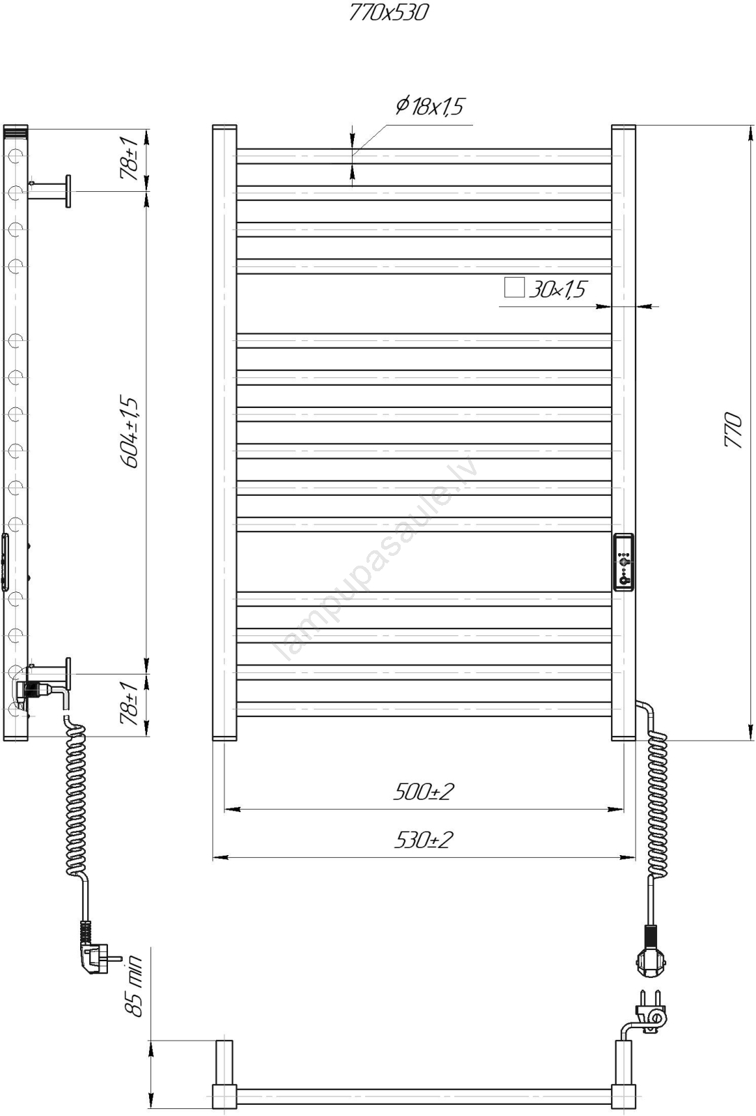 Vannas istabas žeburveida radiators HF DERBY 170W/230V 77x53 cm balts, labais