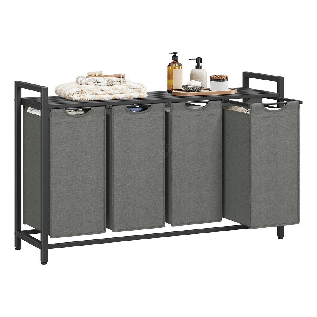• 4 maisi, 1 plaukts – Sordējiet veļu četros auduma maisos (40 l uz maisa) un novietojiet mazgāšanas līdzekļus, mīkstinātāju un citus piederumus uz plaukta.