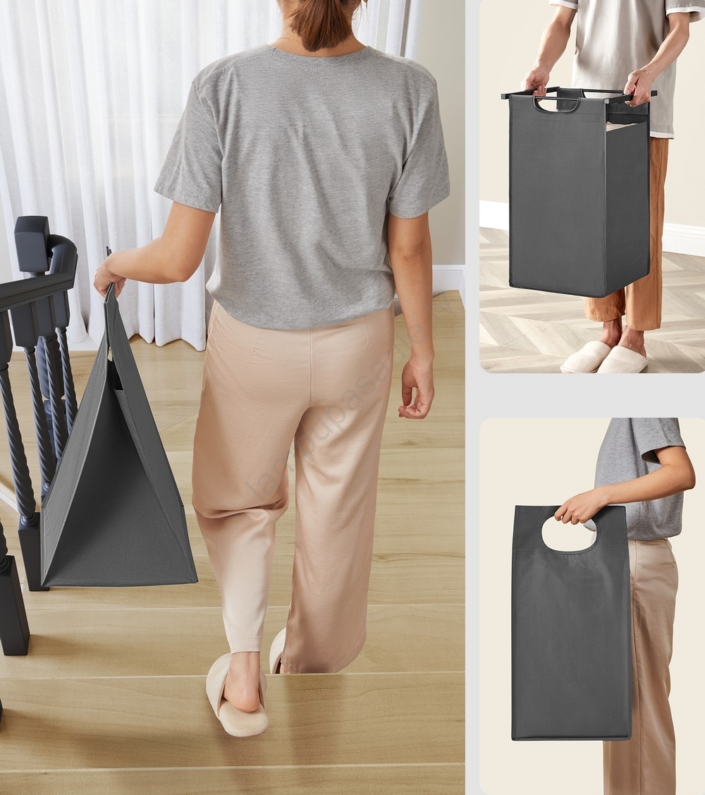 • Izvelciet auduma maisus, atveriet Velcro aizdares, izņemiet veļas maisus un ērti nogādājiet tos veļas mašīnā.