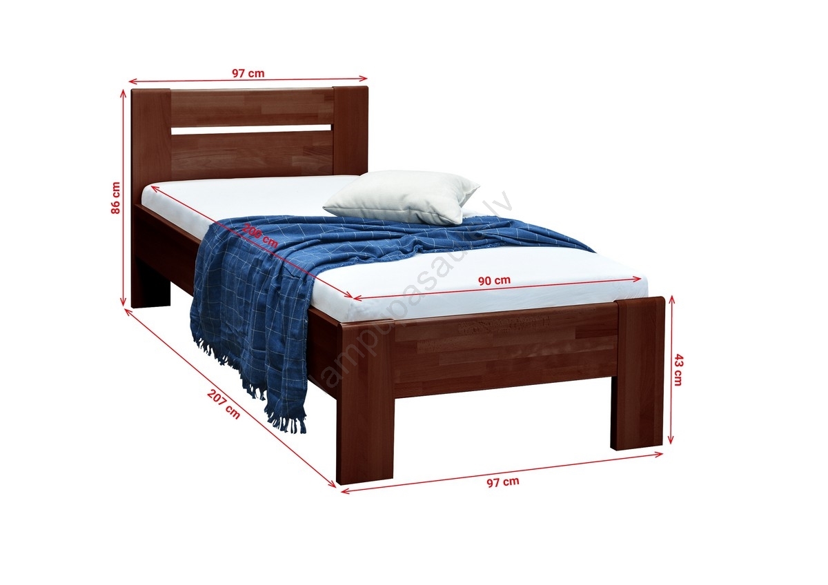 Vienvietīga gulta AMBER 90x200 cm tumšs valrieksts