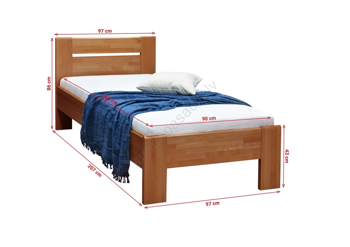 • Vienvietīga masīvkoka gulta AMBER 90x200 cm, bērzs