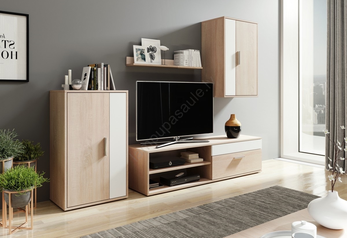 • Sienas skapītis un augstais sānu skapītis piedāvā papildu vietu grāmatām, dekorācijām un sadzīves piederumiem.