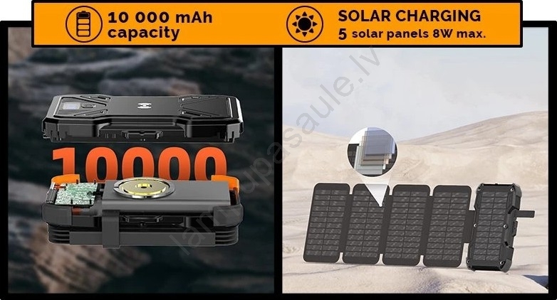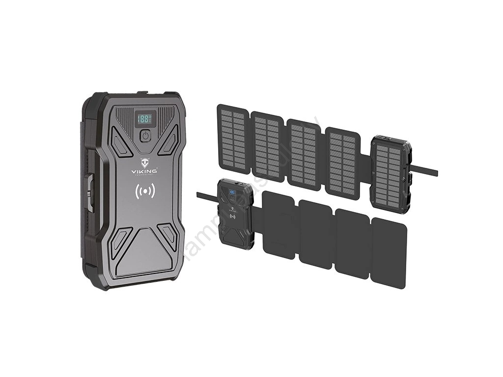 Viking - portatīvais akumulators ar LED lukturi, bezvadu uzlādi un saules paneli Power Delivery 22,5W/10000 mAh