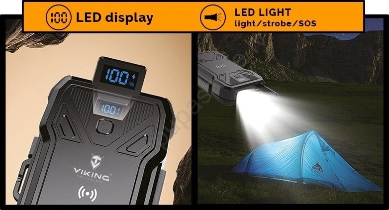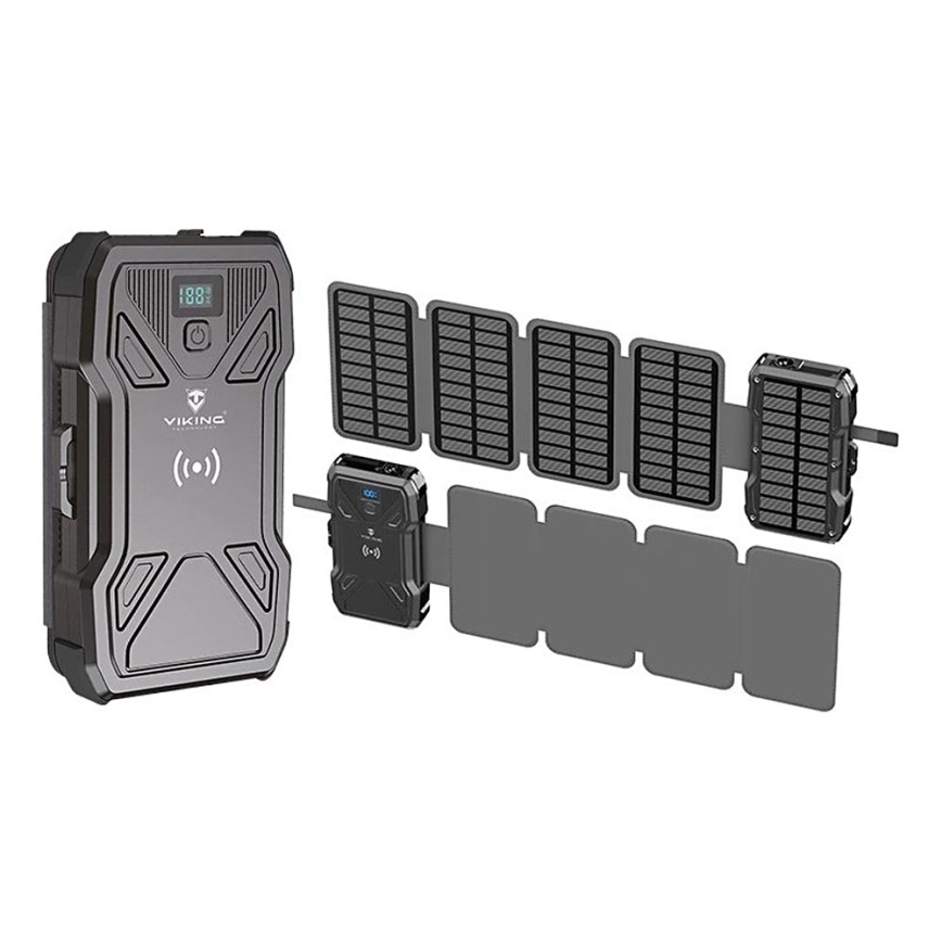 Viking - Powerbank ar iebūvētu LED lukturi, bezvadu uzlādi un saules paneli, Power Delivery 22,5 W / 20000 mAh