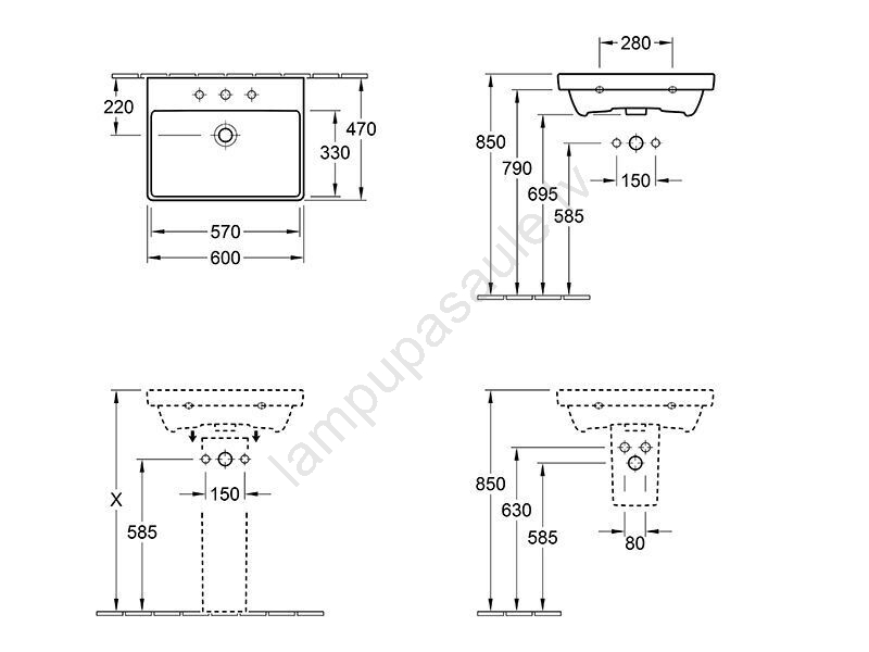 Villeroy & Boch 415860R1 - pie sienas piestiprināma izlietne AVENTO 60x47 cm keramika/balta | Lampup