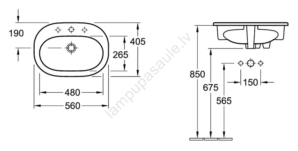 Villeroy & Boch 41615601 - Iebūvējamā izlietne O.NOVO 56x40,5 cm keramika/balta | Lampupasaule