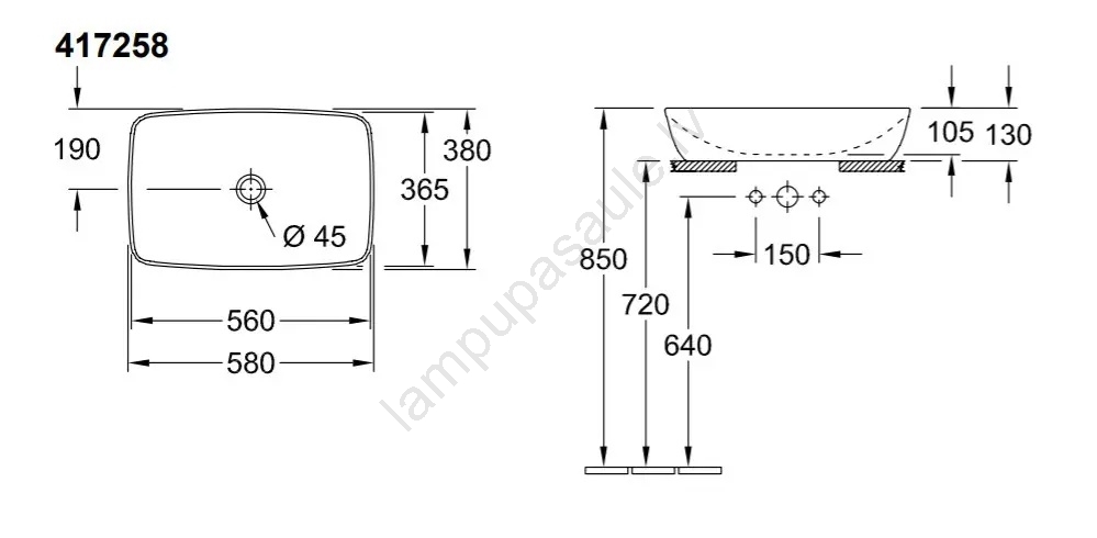 Villeroy & Boch 417258BCT8 - ARTIS virsmas uzstādāma izlietne 58x38,5 cm keramika/melna | Lampupasau