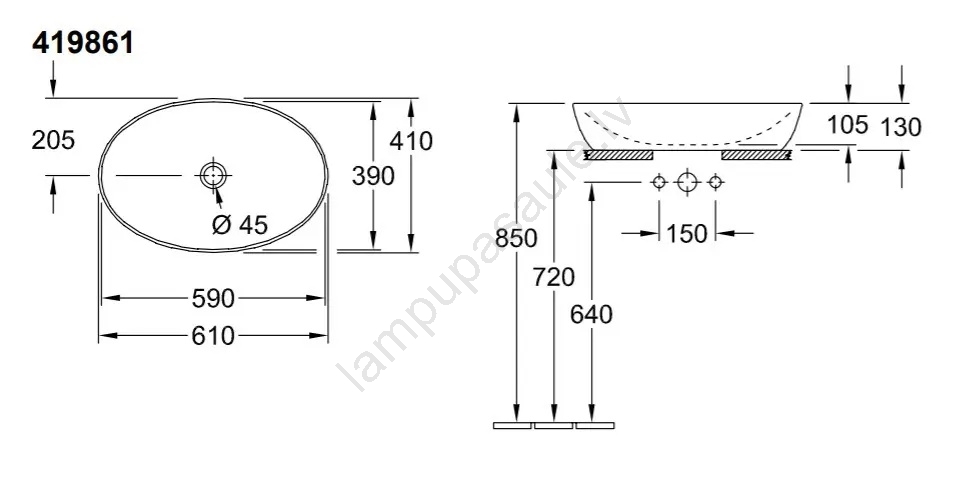 Villeroy & Boch 419861R1 - Uz virsmas uzstādāma izlietne ARTIS 61x41 cm keramika/balta | Lampupasaul