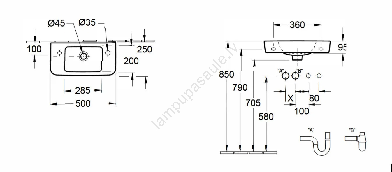 Villeroy & Boch 4342R501 - Sienas piestiprināma izlietne O.NOVO 50x25 cm keramika/balta | Lampupasau