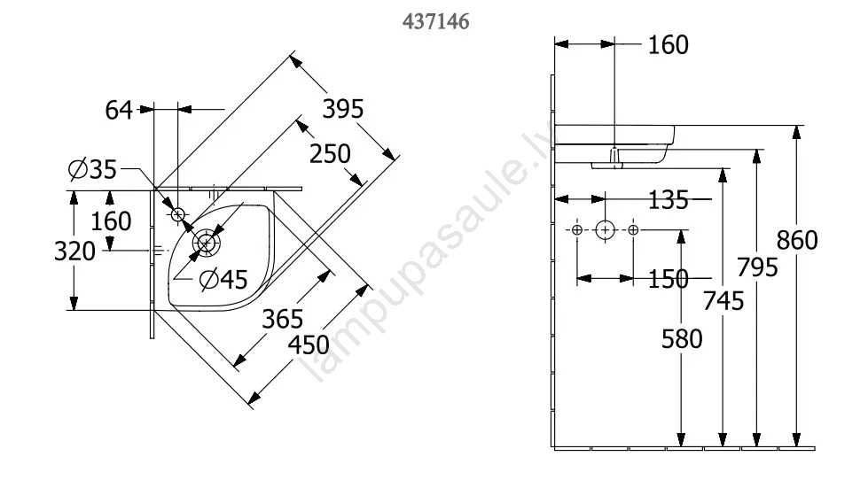 Villeroy & Boch 43714601 - Stūra pakarināma izlietne SUBWAY 32x32 cm keramika/balta | Lampupasaule