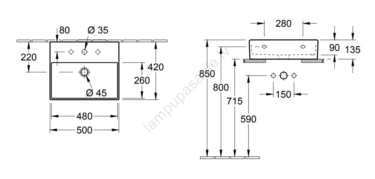Villeroy & Boch 4A225G01 - MEMENTO sienas piestiprināma izlietne 50 x 42 cm, keramika/balta | Lampup