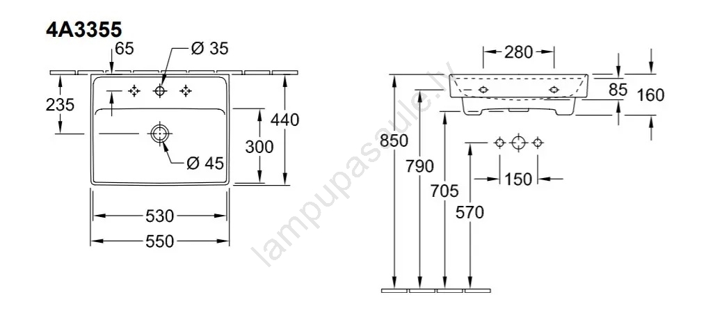 Villeroy & Boch 4A335501 - Sienas uzstādāma izlietne COLLARO 55x44 cm keramika/balta | Lampupasaule