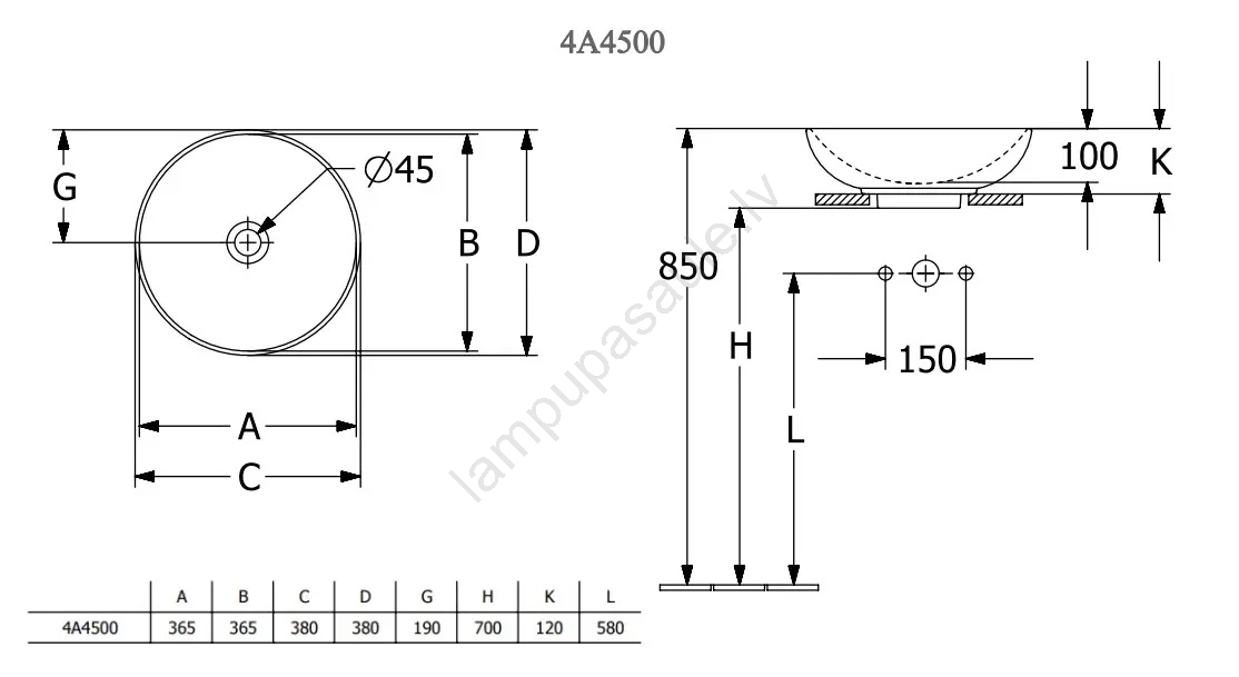 • Izlietnes jaucējkrāns un sifons nav iekļauti komplektācijā.