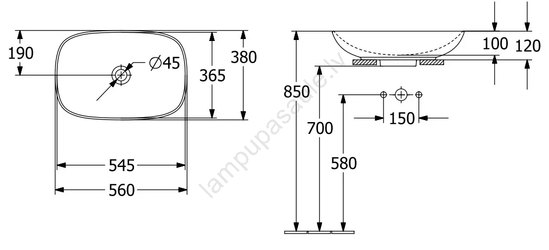 Villeroy & Boch 4A490001 - Uz virsmas uzstādāma izlietne LOOP&FRIENDS 56x38 cm keramikа/balta | Lamp