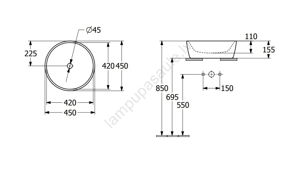 Villeroy & Boch 5A254501 - Uz virsmas uzstādāma izlietne ARCHITECTURA Ø 45 cm keramika/balta | Lampu