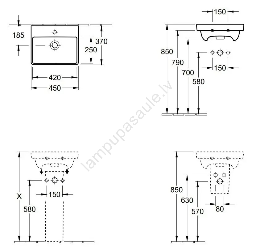 Villeroy & Boch 73584501 - Karājamā izlietne AVENTO 45x37 cm keramika/balta | Lampupasaule