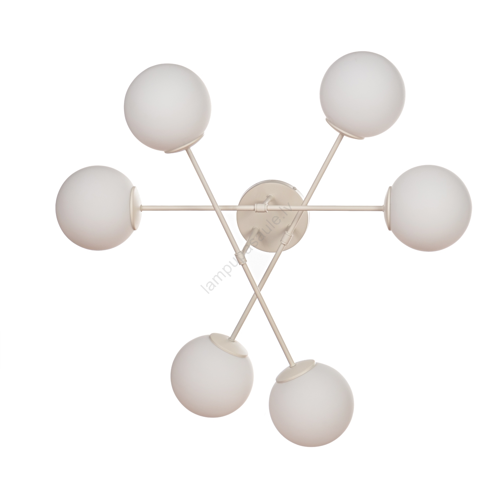 Virspusēji montēta griestu lampa MOON 6xE27/15W/230V krēmkrāsā izceļas ar jauku un funkcionālu dizainu.  Spuldze ar E27 cokolu irpiemērota lampai. Šeit, varat iegādāties citas spuldzes par izdevīgām cenām. Tā būs interesants jūsu mājas papildinājums.