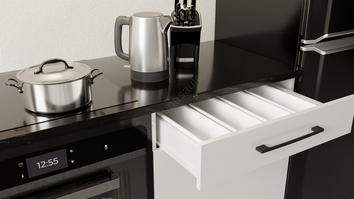 • Skapju izvietojums ir modulārs, virtuvi varat pielāgot pēc savām individuālajām vēlmēm.