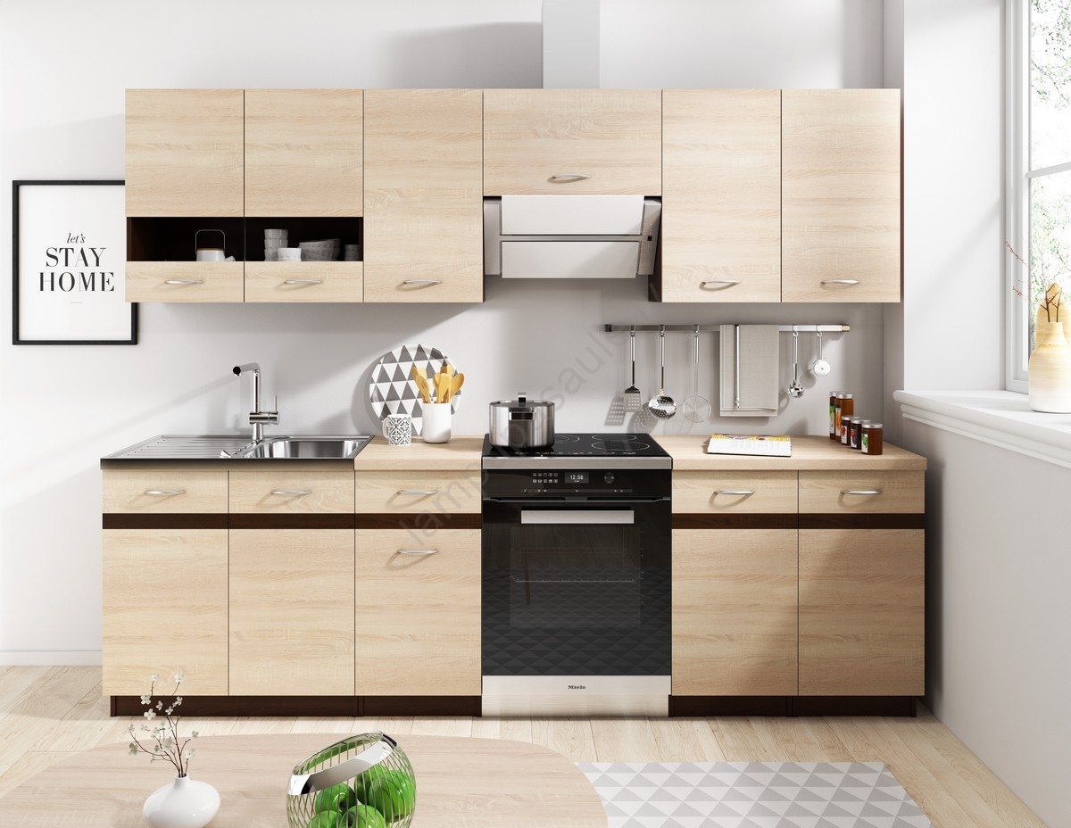 Virtuves iekārta VALERIA 240 cm brūna/sonoma ozols | Lampupasaule