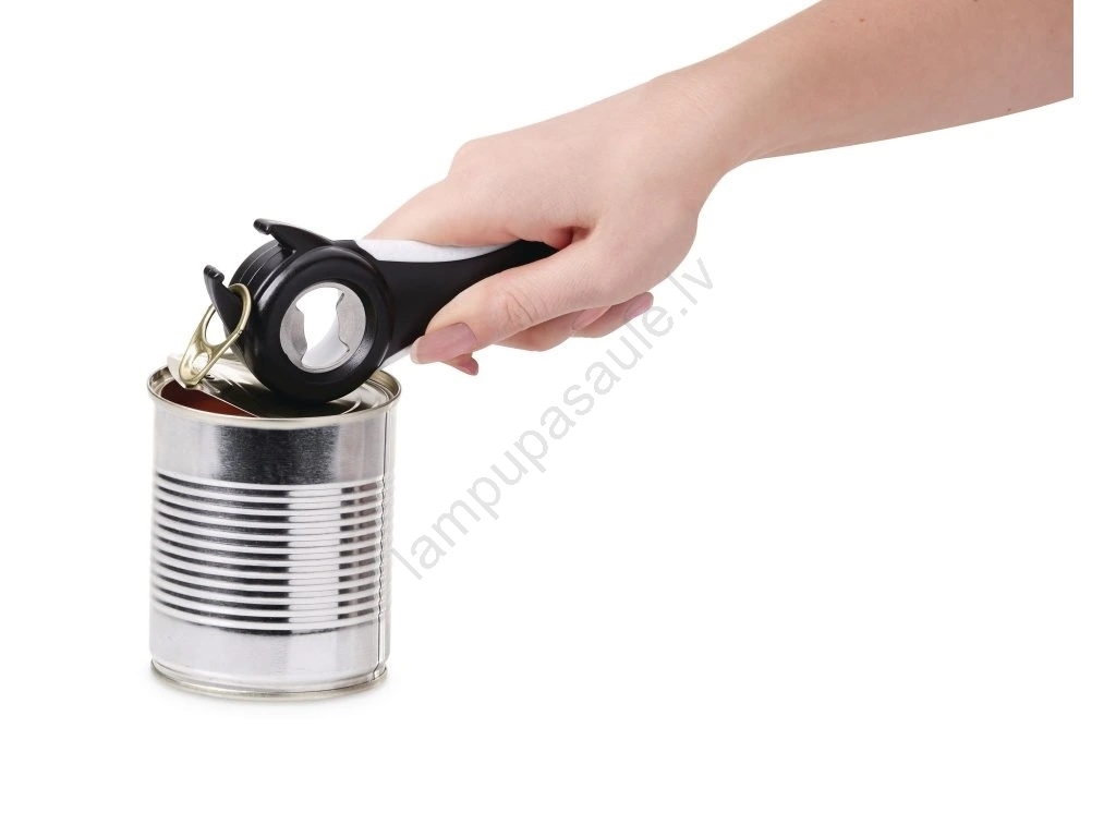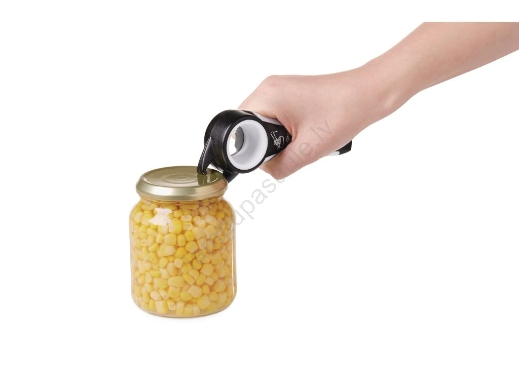 • Pateicoties konstrukcijai, tas veic piecus dažādus uzdevumus: atver metāla bundžas vai konservus, kompotu vāciņus (konservēšanas burkas), kā arī parastos koronas tipa vāciņus stikla pudelēm un skrūvējamos vāciņus PET pudelēm.
