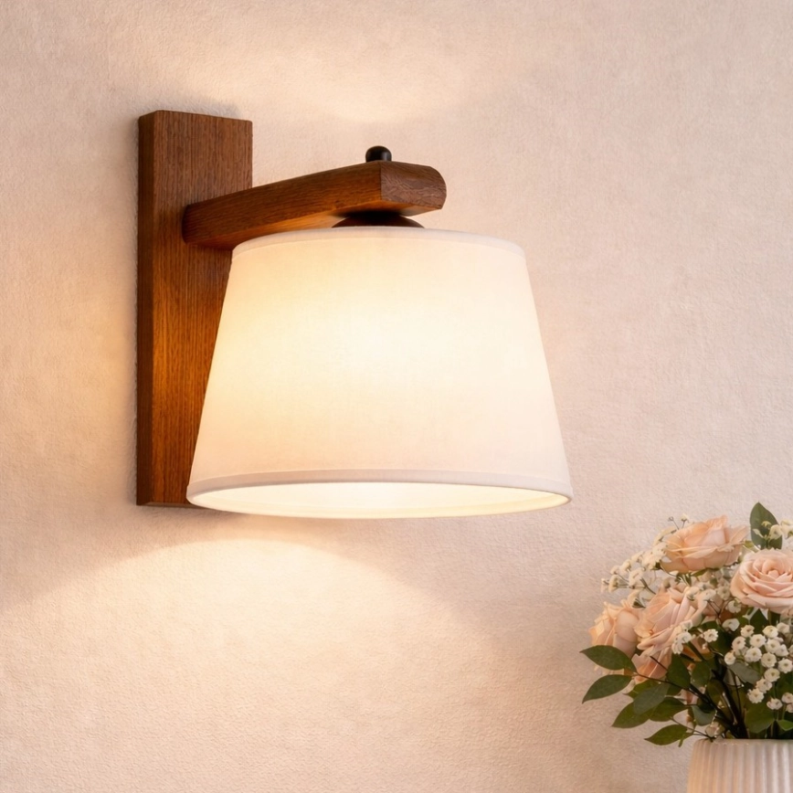Dzīvojamā istaba un guļamistaba, Iekšējais apgaismojums, Koka sienas lampas, Lampas, Sienas lampas, Sienas lampas, Telpas
