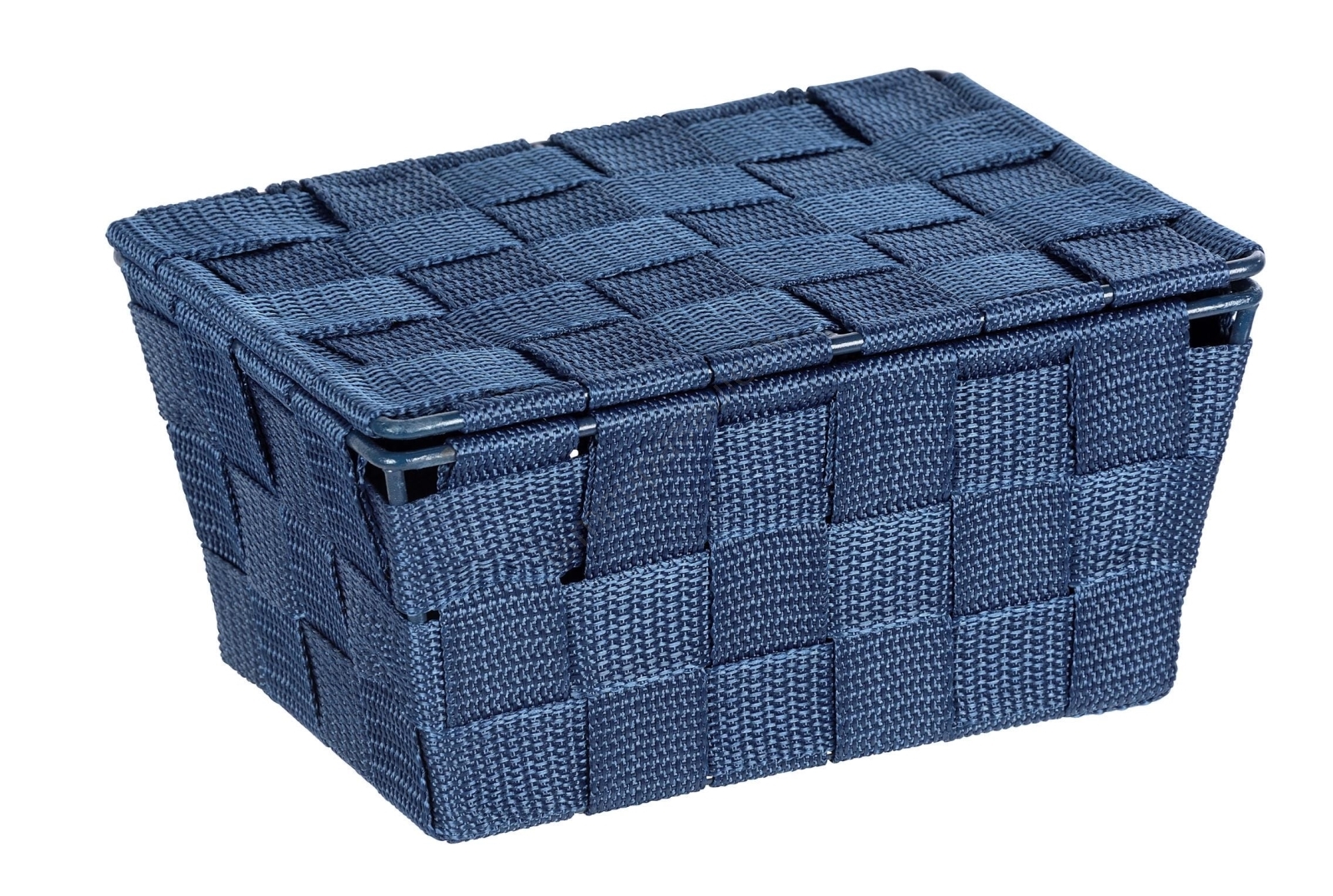 • Stilīgs tumši zils uzglabāšanas grozs ar mūsdienīgu pītas tekstūras izskatu.