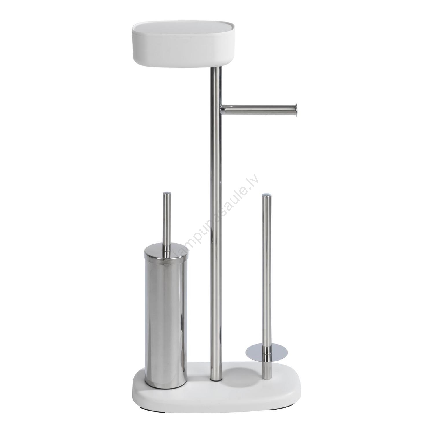 • 5 praktiskas funkcijas vienā – WC birste, tualetes papīra turētājs, rezerves ruļļu nodalījums, uzglabāšanas kaste un novietošanas virsma.