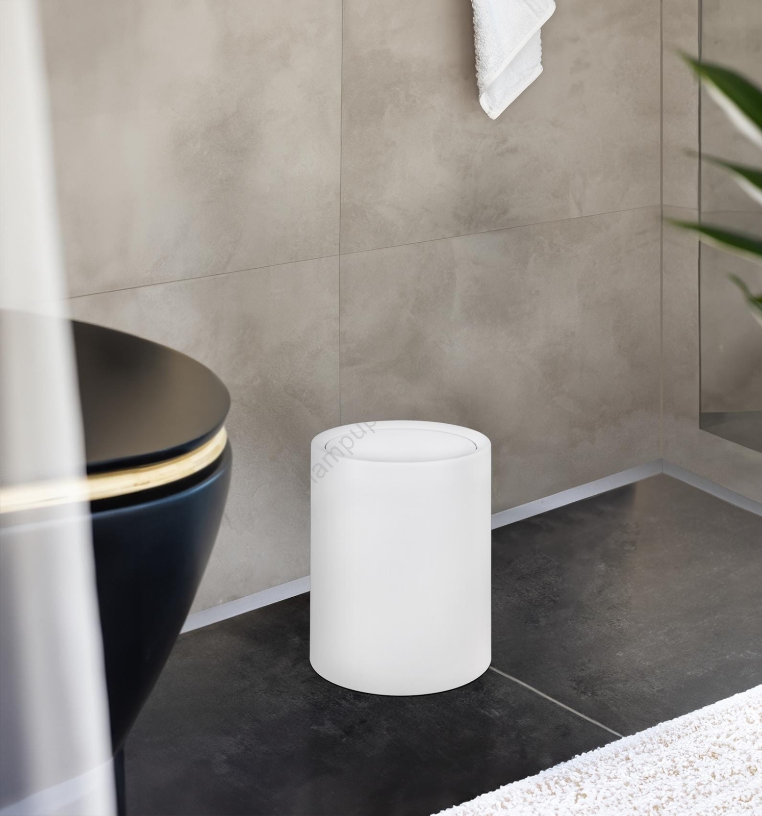 • Elegants atkritumu spainis ar šūpojošu vāku, kas nodrošina tīru un stilīgu vannasistabas izskatu.