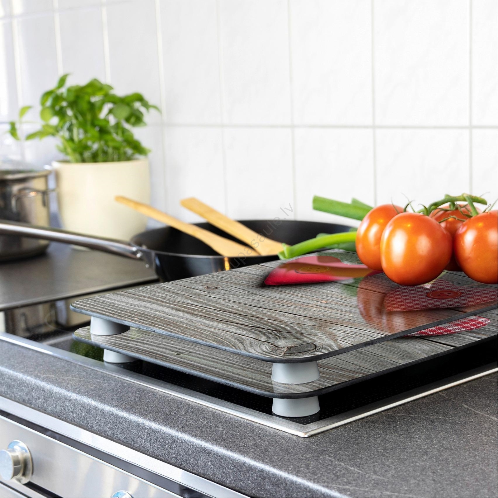 • Stilīgs dekoratīvs elements, kas paslēpj plīts virsmu no viesu skatieniem.