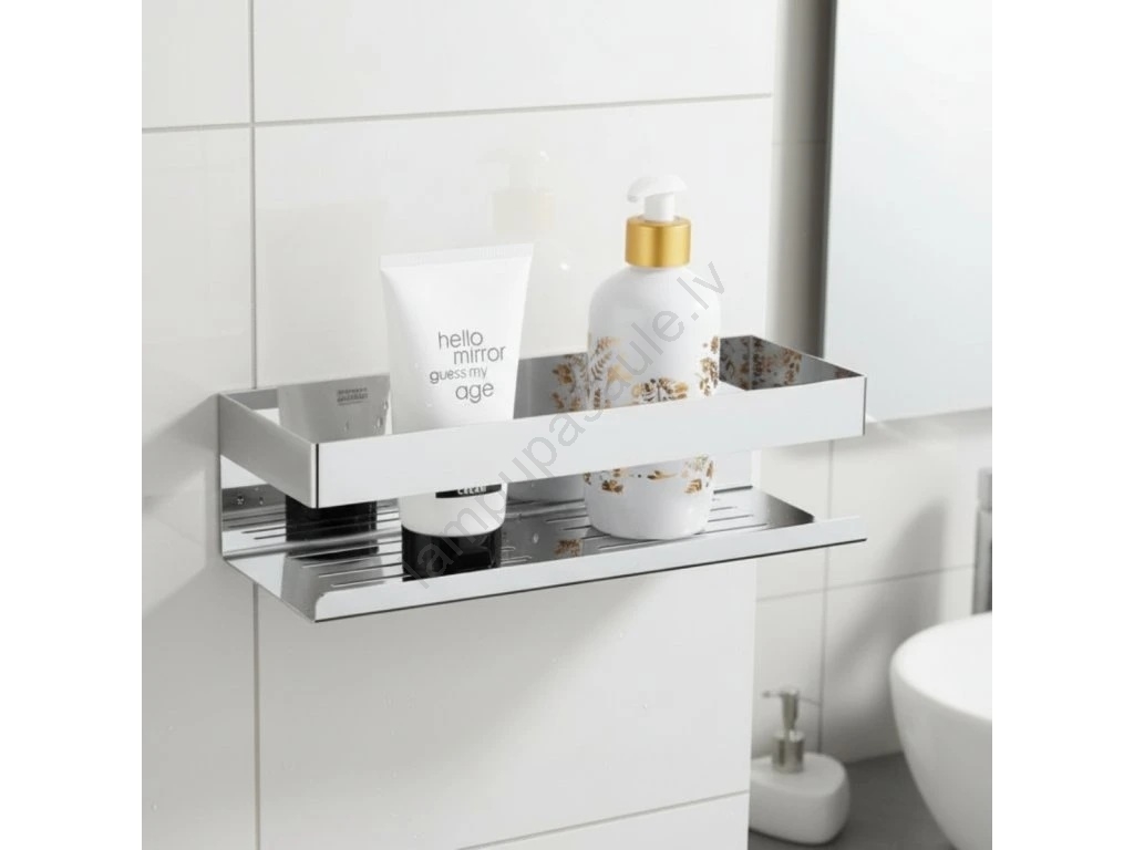 WENKO 25413100-Plaukts TURBO-LOC GENOVA SHINE 30x10,5 cm sudraba krāsā