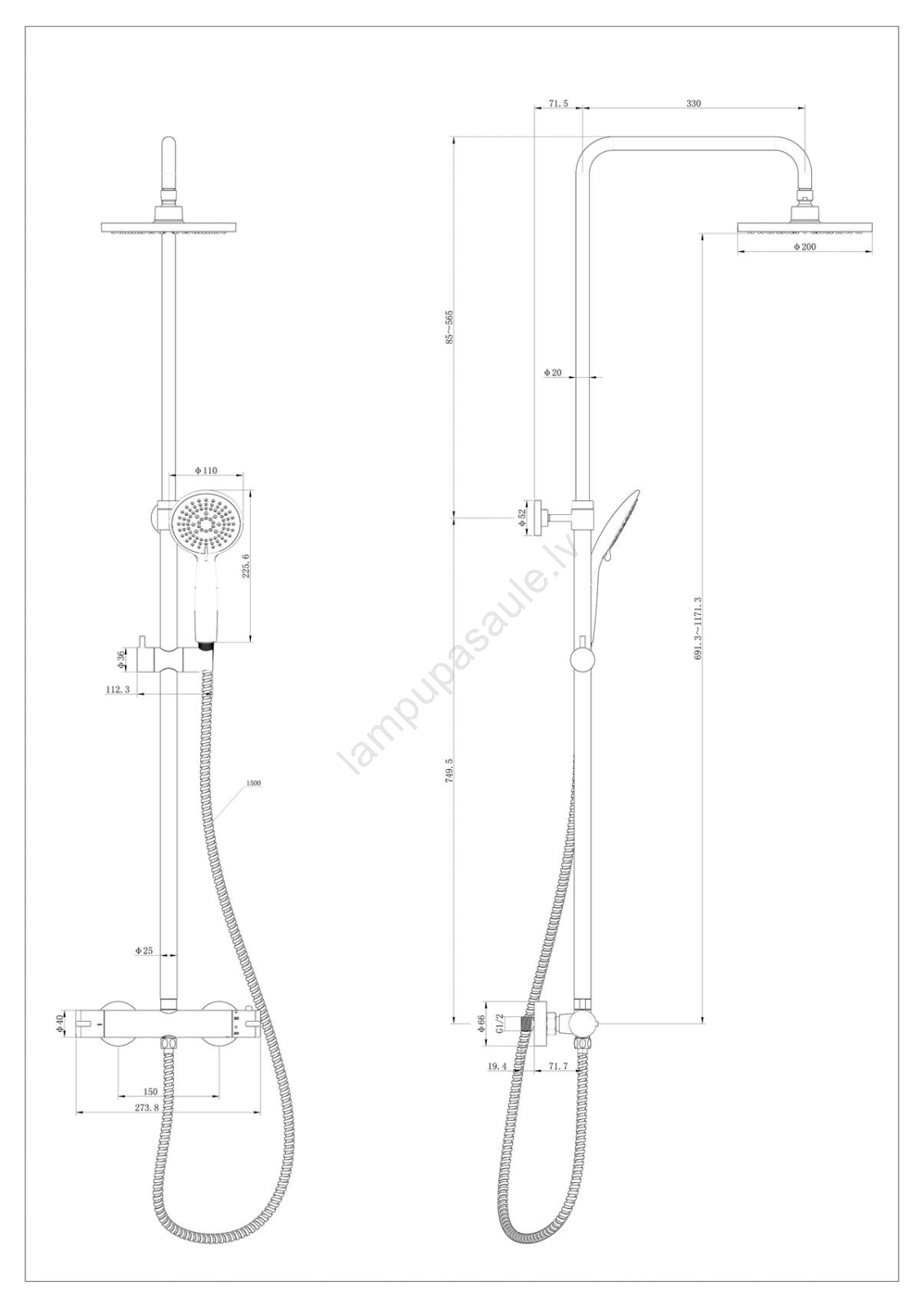 • Mūsdienīgs dušas sistēmas komplekts ar termostatiski regulējamu jaucējkrānu komfortablai dušošanai.